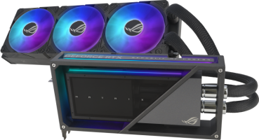 The ROG Matrix GeForce RTX™ 4090 delivers absolute pinnacle performance while maintaining quiet thermal operation, via liquid metal thermal compound on the GPU die, a premium 360 mm AIO cooler and a stunning hollow metal frame design.